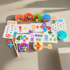 Aprendizaje a través del juego: Con cuentas de colores vibrantes y tazas de emparejamiento, los niños disfrutarán mientras desarrollan habilidades esenciales de conteo y números.